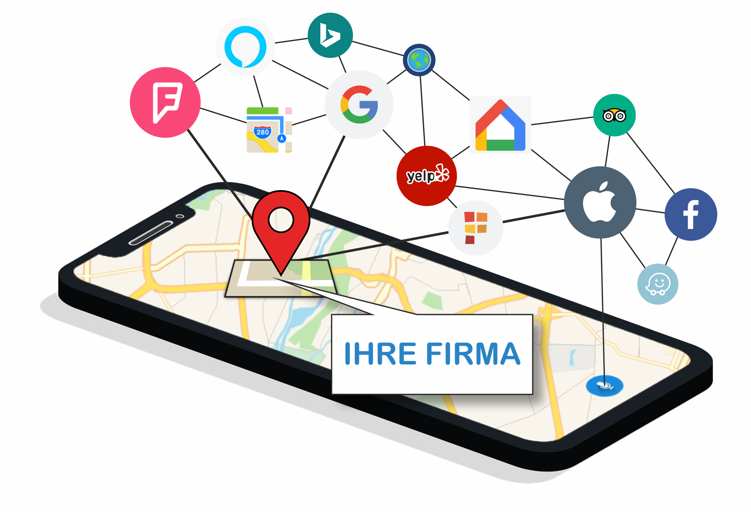 Diese wichtigen Suchmaschinen, Branchenverzeichnisse, Navis und Karten/Maps gleichen sich mit dem optimierten Google My Business Account ab und durch diese einheitlichen Daten steigert sich in allen Suchmaschinen und digitalen Medien Ihr Ranking.